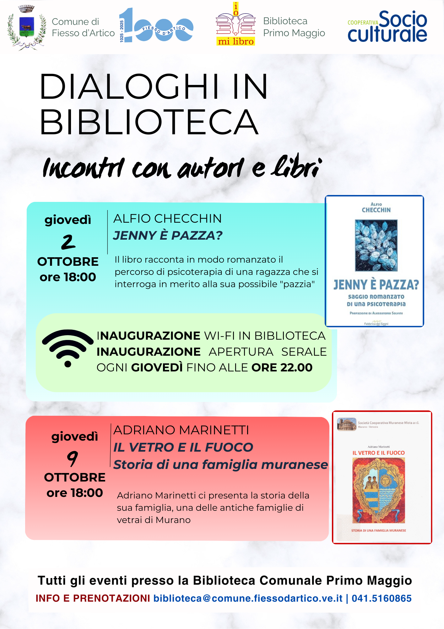 Per maggiori informazioni o prenotazioni contattare: biblioteca@comune.fiessodartico.ve.it | 041 5160865 (preferibile inviare email).